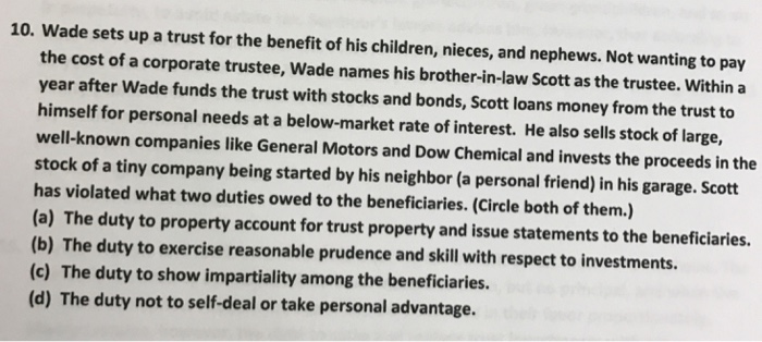 Solved Wade Sets Up A Trust For The Benefit Of His Childr